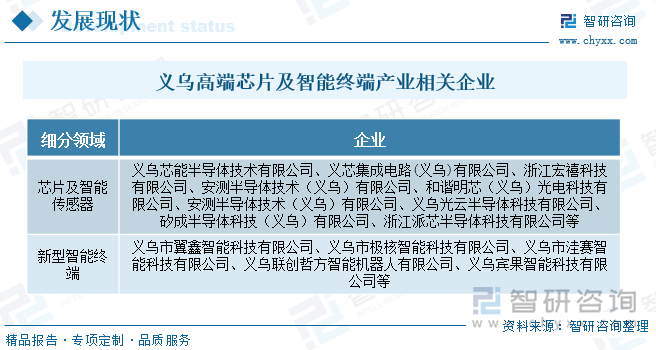 义乌市高端芯片及智能终端财产正处于起步培育阶段,目前正正在鼎力扶植义乌芯片财产园,积极对接引入深圳芯能先辈功率模块封拆制制项目等优良项目,将为义乌培育成长高科技含量的高端芯片及智能终端财产、获取新一轮财产成长合作劣势供给了无力支持。此外,义乌现有的时髦饰品、工艺品、家居日用品、玩具、小家电等保守消费品具备智能化升级的潜力,能够通过借帮互联网、物联网等新一代消息手艺,使其具备智能、交互、大数据办事等功能,从而正在使用端通过以存量企业立异转型带动高端芯片及智能终端财产成长。
