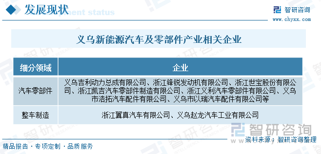 义乌市汽车及零部件现有规上企业超10家,产物次要集中正在新能源汽车整车以及汽车转向机、策动机、变速器、车用后视镜、汽车内饰件等零部件范畴,具有英伦汽车、义利动力总成、锋锐策动机、赵龙汽车、世宝股份等一批企业,初步具备了必然的财产规模。