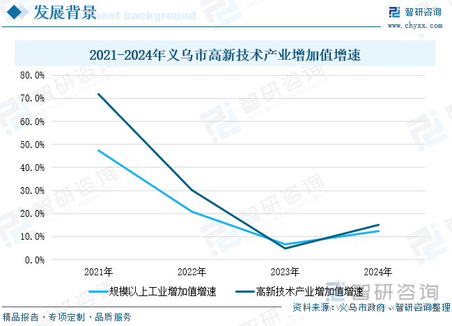 近年来,义乌聚焦数字经济立异提质“一号成长工程”和“415X”先辈制制业集群培育“两条从跑道”,“存量提质”“增量选优”工做思,持续鞭策新旧动能转换,推进工业经济高质量成长,不竭塑制成长新劣势。正在消息光电、新能源汽车及零部件、高端芯片及智能终端、医疗健康等财产系统上,义乌对准强链补链延链项目,全力开展科技招商工做,财产表示亮眼。上市企业:棒杰股份(002634)、小商品城(600415)、浙江世宝(002703)、华鼎股份(601113)、线)相关企业:京东方华灿光电(浙江)无限公司、浙江瑞丰光电无限公司、义乌木林森照明科技无限公司、义乌市华彩光电科技无限公司、义乌晶澳太阳能科技无限公司、浙江爱旭太阳能科技无限公司、天合光能(义乌)科技无限公司、晶科能源(义乌)无限公司、(义乌)光伏材料无限公司 、义乌威克新材料无限公司、晶科新材料(义乌)无限公司、义乌吉利动力总成无限公司、浙江锋锐策动机无限公司、浙江世宝股份无限公司、义乌芯能半导体手艺无限公司、义芯集成电(义乌)无限公司、浙江宏禧科技无限公司、安测半导体手艺(义乌)无限公司、浙江森宇实业无限公司、浙江药业集团、浙江华义制药无限公司、义乌胡庆余堂医药无限公司义乌市是浙江省辖县级市,义乌是全国首个县级国度级国际商业分析试验区、全国18个典型地域之一。近年来,义乌市经济稳步增加,2024年义乌市实现地域出产总值2503。5 亿元,按不变价计较,比上年增加7。5%,别离高于全省(5。5%)、金华(6。3%)2个和1。2个百分点。此中,第一财产添加值28。3亿元,增加4。5%;第二财产添加值717。9亿元,增加7。3%;第三财产添加值1757。3亿元,增加7。6%。面临错综复杂的经济形势和各类风险挑和,义乌笃定不移推进“贸工联动”计谋,聚焦工业新旧动能转换和高质量成长,加速财产布局优化升级,强化立异驱动,工业经济呈现稳中向好、优中做强、快中提质优良态势。2024年,义乌市完陈规模以上工业添加值298。1亿元,比上年增加12。4%。高手艺财产(制制业)、高新手艺财产添加值别离比上年增加46。9%和15。1%,别离高于全市规上工业添加值增速34。5个和2。7个百分点。